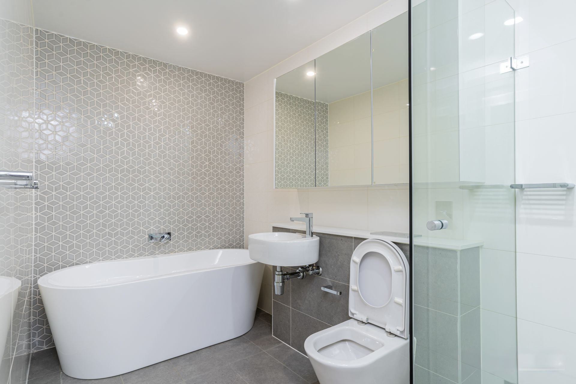 - Sleek bathrooms one with shower and bath tub